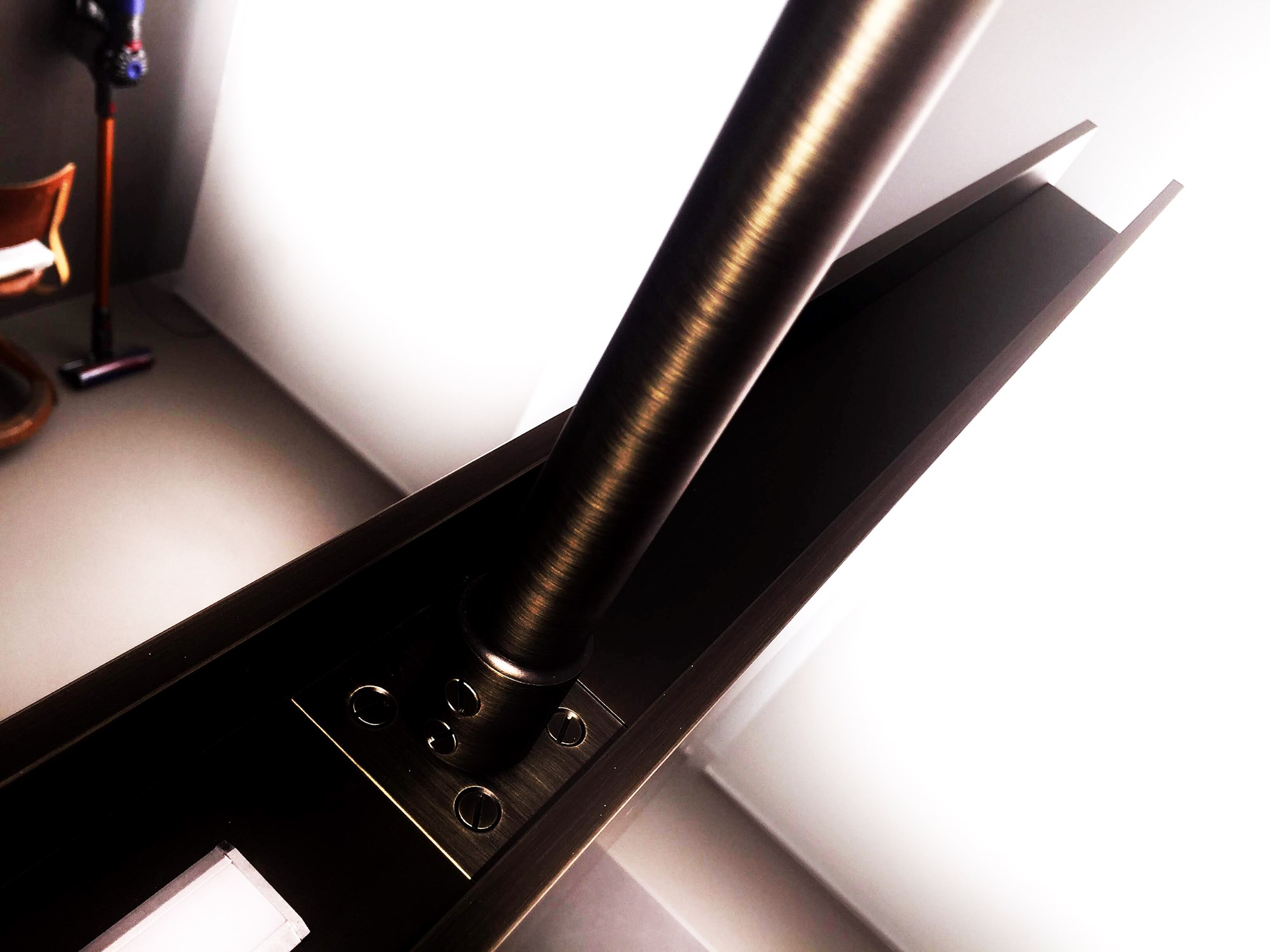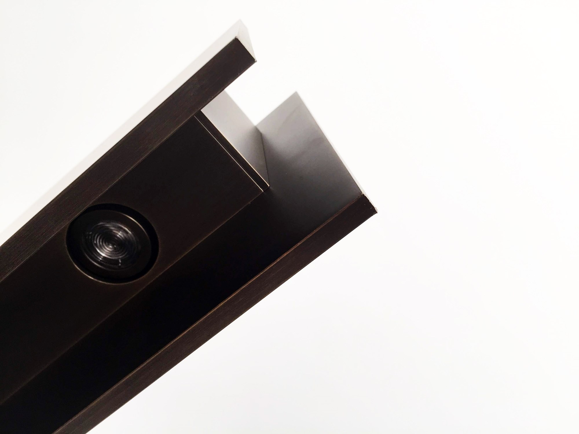 É um candeeiro de dimensões e espessuras generosas, desenhado em cada detalhe e fabricado em alumínio com posterior tratamento de brunimento artesanal.